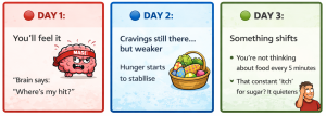 Translation: You’re back in control… not your habits! Your healthy brain will make nourishing choices appealing! No fight!